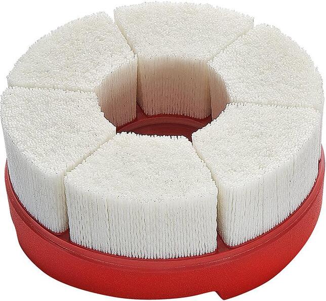 CNC talířový kartáč, keramické zrno Provedení: Veľmi husté celoplošné osadenie polyamidovými vláknami s vysokou pevnosťou v ťahu, odolnými proti pretiahnutiu a oderu. Otvor s dvojitou drážkou. Vhodný pre upínač pre nástrčné frézy (DIN 6357) alebo upnutie kombinovaného frézovacieho trnu (DIN 6358). Použitie: Vhodný na použitie v obrábacích centrách, na priebežných odjehlovacích linkách a zariadeniach s planetovými kartáčovými systémami, ako aj na použitie s robotmi. Na odjehlovanie a zaoblenie hrán na okrajoch rovných povrchov obrobku ako napr. vysekávané, lisované a slinuté diely, vŕtané a frézované obrobky atď. Vhodné na mokré aj suché obrábanie. Vaše výhody: Úspora času: Úprava obrobku priamo po obrábaní bez nutnosti jeho premiestňovania. Procesná bezpečnosť: Vysoká tvarová stabilita štetín a presnosť súososti kartáča. Reprodukovateľný výsledok: Uvoľňovanie nových brúsnych zŕn po celú dobu životnosti. Výrobca: Lessmann GmbH, Lucas-Schultes-Str. 2, 86732 Oettingen i. Bayern, DE, +4990827070, info@lessmann.com