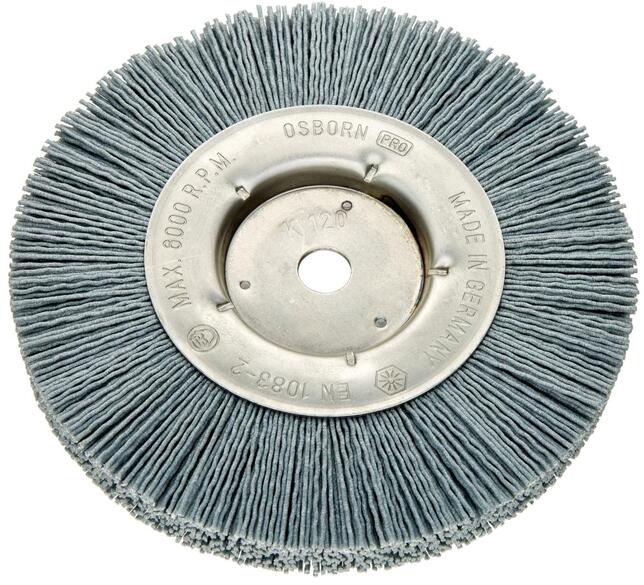 Kruhový kartáč, karborundum Provedenie: Veľmi robustný, karborundom prostúpené nylonové vlákna s tvrdými a ostrými špičkami a veľmi flexibilnou pracovnou plochou. Vysoká pružnosť bez rizika zlomenia. Zabránia sa ucpávaniu plochy osadenia zbytkami po brúsení, týmto sa dosiahne konštantný vysoký výsledok brúsenia. Použitie: Pre upnutie do stacionárnych strojov. K odhrotovaniu presných dielov a úsekov rúr a profilov so stálym brúsnym účinkom. Výrobca: Osborn GmbH, Ringstraße10, 35099 Burgwald, DE, +4964515880, smandel@osborn.de