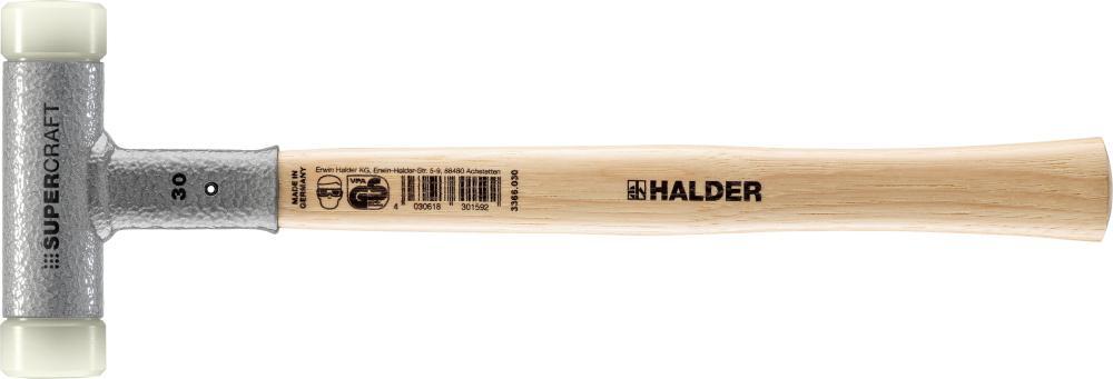 Šetrné kladivo SUPERCRAFT, bez spätného nárazu Provedenie: Telo kladiva z ocele, bez spätného rázu použitím guľôčkovej výplne. Nylonové vložky sú vymeniteľné. S lakovanou rukoväťou z orechovca. Použitie: Pre cielené, presné údery vo výrobe nástrojov, strojov a prevodoviek. SUPERCRAFT S dvoma valcovými úderovými hlavami. Výrobca: Erwin Halder KG, Erwin-Halder-Str. 5-9, 88480 Achstetten-Bronnen, DE, +49739270090, info@halder.de