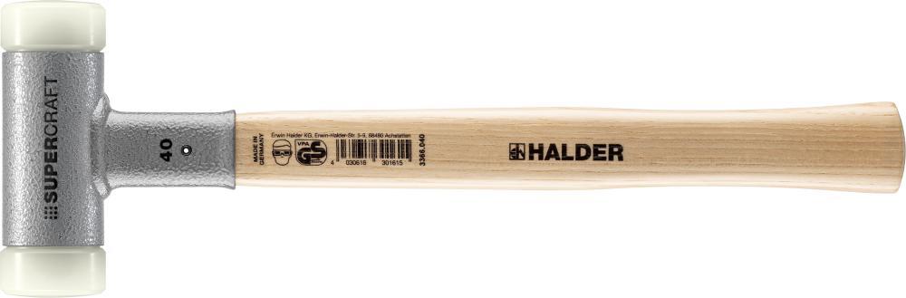 Šetrné kladivo SUPERCRAFT, bez spätného nárazu Provedenie: Telo kladiva z ocele, bez spätného rázu použitím guľôčkového vyplnenia. Nylonové vložky sú vymeniteľné. S lakovanou rukoväťou z orechovca. Použitie: Pre cielené, presné údery vo výrobe nástrojov, strojov a prevodoviek. SUPERCRAFT S dvoma valcovými úderovými hlavami. Výrobca: Erwin Halder KG, Erwin-Halder-Str. 5-9, 88480 Achstetten-Bronnen, DE, +49739270090, info@halder.de