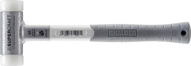 Šetrné kladivo SUPERCRAFT so 3-složkovou rukoväťou, bez spätného rázu Prevedenie: Telo kladiva z ocele, bez spätného rázu použitím guľôčkovej výplne. Nylonové hlavy sú vymeniteľné. Optimálne vlastnosti pre zatĺkanie s ergonomicky tvarovanou, nevibrujúcou protišmykovou 3-složkovou rukoväťou (jadro zo sklenených vlákien). Použitie: Pre cieľové, presné údery vo výrobe nástrojov, strojov a prevodoviek. Výrobca: Erwin Halder KG, Erwin-Halder-Str. 5-9, 88480 Achstetten-Bronnen, DE, +49739270090, info@halder.de