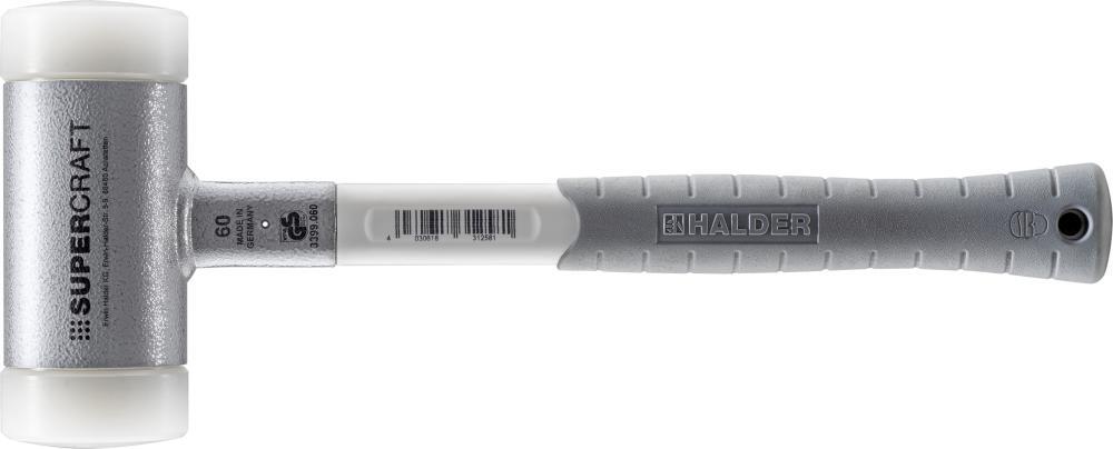 Šetrné kladivo SUPERCRAFT so 3-složkovou rukoväťou, bez spätného rázu Prevedenie: Telo kladiva z ocele, bez spätného rázu použitím guľôčkovej výplne. Nylonové hlavy sú vymeniteľné. Optimálne vlastnosti pre zatĺkanie s ergonomicky tvarovanou, nevibrujúcou protišmykovou 3-složkovou rukoväťou (jadro zo sklenených vlákien). Použitie: Pre cielené, presné údery vo výrobe nástrojov, strojov a prevodoviek. Výrobca: Erwin Halder KG, Erwin-Halder-Str. 5-9, 88480 Achstetten-Bronnen, DE, +49739270090, info@halder.de