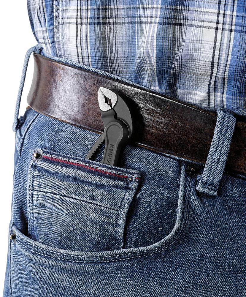 Kliešte SIKO Cobra® Vyhotovenie: DIN ISO 8976. Z vanádiovej elektrooceli, v oleji tvrdené a popúšťané, úchopné plochy so špeciálne tvrdenými zubami (61 HRC). Nastaviteľné jednou rukou. Posuvný priechodný čap umožňuje vysokú stabilitu vďaka dvojitému vedeniu. Ochrana proti priskruteniu zabraňuje zraneniam spôsobeným priskrutnením. Samosvorné na trubkách a maticiach. Cobra® XS. Hlava leštená, extra úzke vyhotovenie. Jemné nastavenie pomocou nasunutia. Výrobca: KNIPEX-Werk C. Gustav Putsch KG, Oberkamper Str. 13, 42349 Wuppertal, DE, +4920247940, info@knipex.de