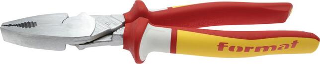 VDE silové kombinované kliešte Provedenie: DIN ISO 5746. Z špeciálnej nástrojovej vysoko legovanej ocele, v oleji kalené a popúšťané. Hlava pochromovaná, čeľuste a úchopové zóny na plochý a guľatý materiál. Rukoväte s viacosložkovými plastovými návlekmi, izolácia do 1000 V, podľa IEC 60900, ČSN EN 60900, VDE 0682/časť 201. Extra dlhé ostria, dodatočne induktívne tvrdené (64 HRC). Úspora 30 % vynaloženej sily vďaka lepším pákovým pomerom v porovnaní s kombinovanými kliešťami o rovnakej dĺžke. Výrobca: Einkaufsbüro Deutscher Eisenhändler GmbH, EDE Platz 1, 42389 Wuppertal, DE, +4920260960, webkontakt@ede.de