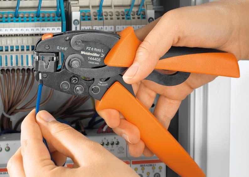 Lisovacie kliešte PZ 6 roto L Vyhotovenie: Telo klieští z ocele, s vynútenou blokáciou pre riadne a úplné lisovanie. Možnosti odblokovania v prípade nesprávneho ovládania. Rukoväte s viaczložkovými plastovými návlekmi. Použitie: Na zalisovanie koncových dutiniek DIN 46228 (časť 1 + 4), s a bez plastového límca. Trapézové zalisovanie. S otočnou matricou. Vďaka otočnému kĺbu je zavedenie koncových puzdier možné ako spredu, tak aj zo strany. S aretačnou hlavou na upevnenie lisovacej vložky. Výrobca: Weidmüller GmbH & Co KG, Klingenbergstraße 26, 32758 Detmold, DE, +49 5231 1428 0, weidmueller@weidmueller.de