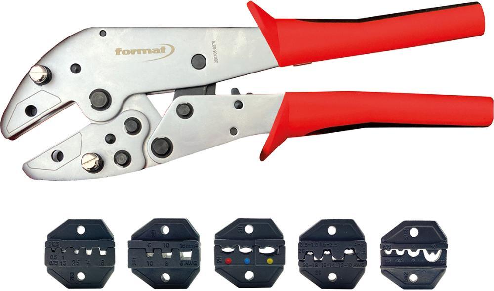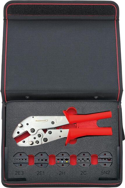 Krimpovacie kliešte s výmennými vložkami Provedenie: Telo klieští z ocele, rukoväte s plastovými návlekmi. Výměna krimpovacích profilov bez nástrojov. Zavedenie zo strany. Dodávame v nylonovom puzdre s penovým modulom. Použitie: Na zalisovanie káblových koncoviek DIN 46228 (časť 1 + 4), zasúvacích spojok, plochých koncoviek DIN 60352. 5 výmenných vložiek, pre spracovávanie: káblových koncoviek 0,5-6 mm²; 6–16 mm² Izolované zasúvacie spojky 0,5-6 mm² neizolované zasúvacie spojky 0,75-10 mm² ploché zasúvacie koncovky 0,5–6 mm² Výrobca: Einkaufsbüro Deutscher Eisenhändler GmbH, EDE Platz 1, 42389 Wuppertal, DE, +4920260960, webkontakt@ede.de