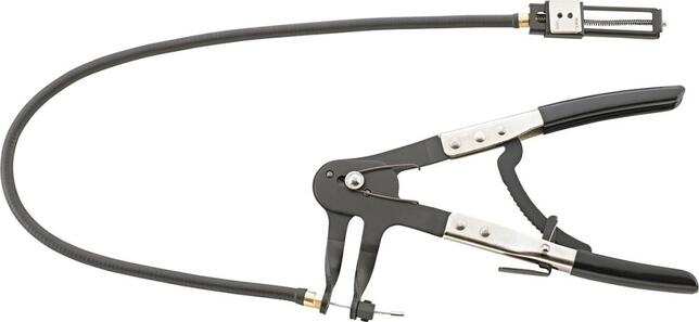 Kliešte na hadicové spony so semiflexibilným bovdenovým lankom, pre pružinové pásové spony a priestorovo úsporné spony Vyhotovenie: Z chrómovej vanádiovej ocele. So semiflexibilným bowdenovým ťahom s plastovým opláštením, ktoré umožňuje prácu bez vodicej ruky. Rukoväte sú opláštené plastom. Pre samoupínacie pružinové pásové spony a priestorovo úsporné spony v oblasti systému chladenia a ohrevu. Výrobca: HAZET-WERK Hermann Zerver GmbH & Co. KG, Güldenwerther Bahnhofstr. 25-29, 42857 Remscheid, DE, +4921917920, info@hazet.de
