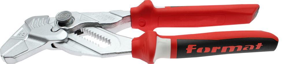 Klešťový kľúč s tlačidlom Provedenie: Súbežne vedené, hladké uchopovacie čeľuste, nastavenie stlačením tlačidla, prestaviteľné jednou rukou. Fungovanie na ráčnovom princípe s veľmi vysokou upínacou silou. Použitie: Mimoriadne vhodné na uchopenie, pridržanie, lisovanie a ohýbanie obrobkov, tiež pre šetrnú montáž armatúr so zušľachteným povrchom vďaka bezvôlovému plošnému prítlaku. Z chromvanádiovej nástrojovej ocele, tvrdené a popúšťané v oleji. Hlava pochromovaná, rukoväte s viacsložkovými plastovými návlekmi. Extrémne vysoká upínacia sila vďaka 10-násobnému zosilneniu ručnej sily. Výrobca: Einkaufsbüro Deutscher Eisenhändler GmbH, EDE Platz 1, 42389 Wuppertal, DE, +4920260960, webkontakt@ede.de