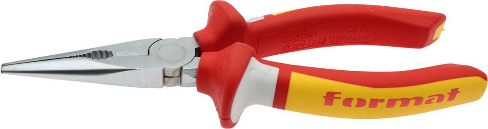 VDE kliešte pre rádiotechniku Provedenie: DIN ISO 5745. V oleji kalené a popúšťané. Hlava pochromovaná, s polokulatými rovnými čeľusťami, ozubené úchopové plochy, břity dodatočne induktívne tvrdené (61 HRC). Rukoväte s viacsložkovými plastovými návlekmi, izolácia do 1000 V, podľa IEC 60900, ČSN EN 60900, VDE 0682/časť 201. Použitie: V oblasti jemnej mechaniky pre uchopenie a rezacie práce pod napätím do 1000 V. Špeciálna nástrojová oceľ. Výrobca: Einkaufsbüro Deutscher Eisenhändler GmbH, EDE Platz 1, 42389 Wuppertal, DE, +4920260960, webkontakt@ede.de