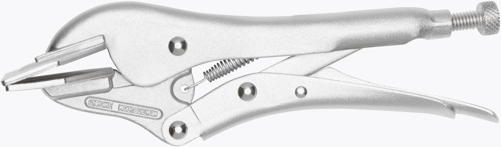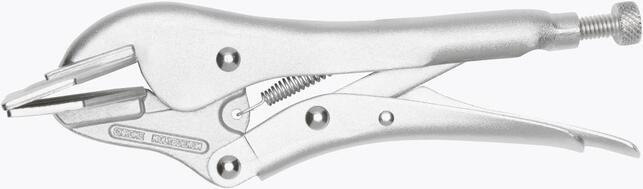 Široké samosvorné kliešte Provedenie: Telo klieští z chrómvanádiovej ocele, poniklované do lesku. S širokými, plochými čeľusťami. Nastavenie rozvoru kľúča a upínacieho tlaku prebieha pomocou regulačného skrutky a rýchloupínacej páčky. Použitie: Ideálne na opracovanie plechov. Na ohýbanie, tvarovanie, lepenie či olemovanie obrobkov. Výrobca: Einkaufsbüro Deutscher Eisenhändler GmbH, EDE Platz 1, 42389 Wuppertal, DE, +4920260960, webkontakt@ede.de