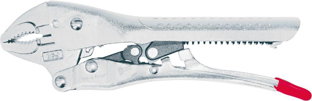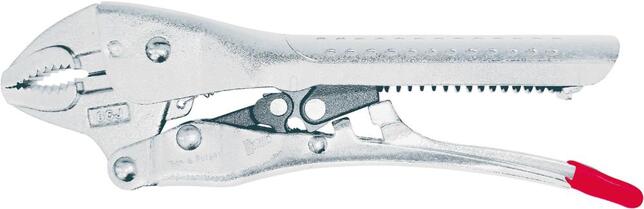 Automatické samosvorné kliešte so zahnutou čeľusťou a štípačkou na drôt Provedenie: Telo klieští z ocele C, poniklované. S integrovanou štípačkou na drôt a ozubenými uchopovacími čeľusťami. Nastavenie upínacieho rozsahu sa vykonáva automaticky, s pogumovanou rýchlo-uvoľňovacou páčkou. Výrobca: Einkaufsbüro Deutscher Eisenhändler GmbH, EDE Platz 1, 42389 Wuppertal, DE, +4920260960, webkontakt@ede.de