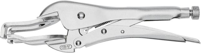 Samosvorné klešte pre zváranie rúrok Provedenie: Z vysoko pevnej ocele, so silne profilovanými upínacími čeľusťami z temperovanej liatiny, ako aj prizmaticky zkosenými hornými čeľusťami, s odolnosťou proti spáleniu. Poniklované do lesku. S regulačným skrutkou na nastavenie upínacieho tlaku a rýchlo-povolovacou pákou. Použitie: K upnutiu a pridržiavaniu rúrok a guľatého materiálu v bezpečnej trojbodovej polohe počas zváracích prác. Výrobca: Einkaufsbüro Deutscher Eisenhändler GmbH, EDE Platz 1, 42389 Wuppertal, DE, +4920260960, webkontakt@ede.de