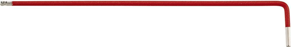 Imbusový kľúč, s guľovou hlavou, easy colour, dlhý Vyhotovenie: DIN 911 L, ISO 2936 L. Z chrómvanádiovej ocele, nepretržite kalené, poniklované a lakované. S guľovou hlavou a skoseným krátkym ramenom. Od rozmeru kľúča 4 mm so symbolom: rozmer kľúča, ISO a materiál. Lakovanie v rôznych farbách uľahčuje priradenie otvorov kľúčov. Použitie: Špeciálne určený na skrutkovanie na miestach s obtiažnym prístupom. Upozornenie: Vďaka špeciálnemu guľovému koncu sa hodí na skrutkovanie pod uhlom až 30°. Výrobca: Einkaufsbüro Deutscher Eisenhändler GmbH, EDE Platz 1, 42389 Wuppertal, DE, +4920260960, webkontakt@ede.de