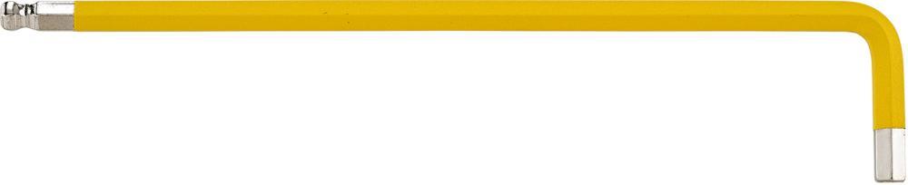 Imbusový kľúč, s guľovou hlavou, easy colour, dlhý Vyhotovenie: DIN 911 L, ISO 2936 L. Z chrómvanádiovej ocele, nepretržite kalené, poniklované a lakované. S guľovou hlavou a skoseným krátkym ramenom. Od rozmeru kľúča 4 mm so symbolom: rozmer kľúča, ISO a materiál. Lakovanie v rôznych farbách uľahčuje priradenie otvorov kľúčov. Použitie: Špeciálne určený na skrutkovanie na miestach s obtiažnym prístupom. Upozornenie: Vďaka špeciálnemu guľovému koncu sa hodí na skrutkovanie pod uhlom až 30°. Výrobca: Einkaufsbüro Deutscher Eisenhändler GmbH, EDE Platz 1, 42389 Wuppertal, DE, +4920260960, webkontakt@ede.de