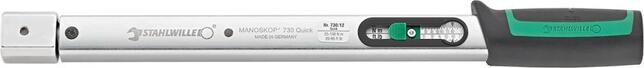 Momentový kľúč MANOSKOP® 730 Quick Vyhotovenie: Extrémne odolný s dlhou životnosťou. Stupnica pre odčítanie N·m alebo lbf·ft, čitateľná pomocou stupnice v okienku. Telo z oceľovej trubky s 2-složkovou plastovou rukoväťou, hlava s upínačom pre nástrčné nástroje. Bezpečnostné zablokovanie QuickRelease zaručuje bezpečné zaaretovanie a rýchlu výmenu nástrčných nástrojov. Pre kontrolované dotahovanie doprava a doľava. Nie je potrebné vynulovanie, pretože merací prvok sa zaťažuje len pri utahovaní, ohybová tyč namiesto pružiny. Jasne rozlíšiteľný akustický a hmatateľný signál spúšte. Jednoduché a pohodlné nastavenie stupnice pomocou posuvného prvku, možnosť dodatočného nastavenia bez demontáže. Klasifikácia podľa DIN EN ISO 6789-2:2017. Dodávka vrátane skúšobného certifikátu. Použitie: Pre kontrolované dotahovanie skrutiek v príslušnom rozsahu točivého momentu, pre všetky priemyselné výrobné oblasti. Ideálne pre ťažko prístupné skrutkové spoje. Výrobca: STAHLWILLE Eduard Wille GmbH & Co. KG, Lindenallee 27, 42349 Wuppertal, DE, +4920247910, info@stahlwille.de