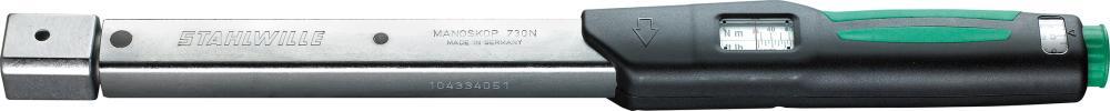 Momentový kľúč MANOSKOP® 730N Vyhotovenie: Extrémne odolný a s dlhou životnosťou. Dvojitá stupnica na odčítanie N·m a lbf·ft, čitateľná pomocou stupnice v okienku. Telo z oceľovej trubky s 2-zložkovou plastovou rukoväťou, hlava s upínačom pre nástrčné nástroje. Bezpečnostné zablokovanie QuickRelease zaručuje bezpečné zaaretovanie a rýchlu výmenu nástrčných nástrojov. Pre kontrolované dotahovanie doprava a doľava. Nie je potrebné vynulovanie, pretože merací prvok sa zaťažuje len pri utahovaní, ohybová tyč namiesto pružiny. Jasne rozlíšiteľný akustický a hmatateľný signál spúšte. Rýchle a presné nastavenie krútiaceho momentu pomocou rýchleho nastavenia QuickSelect, dodatočne nastaviteľné bez demontáže. Klasifikácia podľa DIN EN ISO 6789-2:2017. Dodávka vrátane skúšobného certifikátu. Použitie: Pre kontrolované dotahovanie skrutiek v príslušnom rozsahu krútiaceho momentu, pre všetky oblasti priemyselnej výroby. Ideálne pre ťažko prístupné skrutkové spoje. Výrobca: STAHLWILLE Eduard Wille GmbH & Co. KG, Lindenallee 27, 42349 Wuppertal, DE, +4920247910, info@stahlwille.de