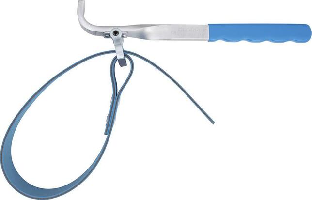 Pásový kľúč Provedenie: Z vanádiovej ocele GEDORE 31CrV3, pochromované, s otvorom na zavesenie. S pevným, veľmi širokým, protisklzovým a vymeniteľným tkaninovým pásom, šírka 25 mm. Použitie: Vhodné na upnutie guľatých dielov s väčšími priemermi. Obzvlášť použiteľné na obrobky s pochromovaným, lešteným povrchom. Výrobca: GEDORE Werkzeugfabrik GmbH & Co. KG, Remscheider Straße 149, 42899 Remscheid, DE, +492191596900, gedore.empfang@gedore.com