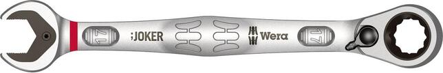 Vidlicový kľúč s očkovou ráčnou Joker č. 6001, prepínateľný Provedenie: Z chrómovanej molybdénovej ocele s nikl-chrómovanou úpravou, rovný tvar. Jemne ozubený ráčnový mechanizmus s 80 zubami a nastavovacím uhlom 4,5° na očkovej strane. Ráčnová hlava je zahnutá pod 15°. Rovná vidlica v obojstrannom šesťhrannom profile a nastavením uhla iba 30° umožňuje rýchlu prácu aj v obmedzených priestoroch. Vymeniteľná tvrdená a ozubená kovová doska na čeľusti, ktorá slúži ako koncový doraz, držiak a ako poistka proti sklzu, uľahčuje ovládanie nástroja a znižuje nebezpečenstvo preklzu a odklzu. Výrobca: Wera Werkzeuge GmbH, Korzerter Str. 21-25, 42349 Wuppertal, DE, +4920240450, sales@wera.de