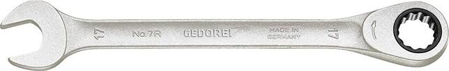 Vidlicový kľúč s očkovou ráčnou Provedenie: rovný tvar. Uhol zalomenia čeľuste 15°. Presný ozubený ráčnový mechanizmus. Utahovacie momenty predčia hodnoty stanovené podľa normy DIN 3110, ISO 3318. Z GEDORE vanádiovej ocele 31CrV3, matne pochromované. Nastavovací uhol 7° do otvoru kľúča 15 mm, 6° do otvoru kľúča 27 mm a 5° do otvoru kľúča 36 mm. Vidlica je presne brúsená na otvor kľúča. Výrobca: GEDORE Werkzeugfabrik GmbH & Co. KG, Remscheider Straße 149, 42899 Remscheid, DE, +492191596900, gedore.empfang@gedore.com