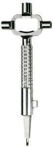 Stavebný kľúč Prevedenie: Zinková tlaková zliatina, leskle niklovaná. S vonkajšími štvorkrkami 6–8 mm, vnútorným šesťhranom 3 mm pre montáž kovania, kužeľovým štvorkrkom 6–10 mm pre zatváranie dverí, unašečom pre zámky s otvormi PZ a dvojitou stupnicou pre vymedzenie potrebnej profilovej cylindrickej vložky. Výrobca: W + M Weissensee Metallwaren GmbH, An der Industriebahn 2, 13088 Berlín, DE, +49 30 92 700 200, service@wplusm.de