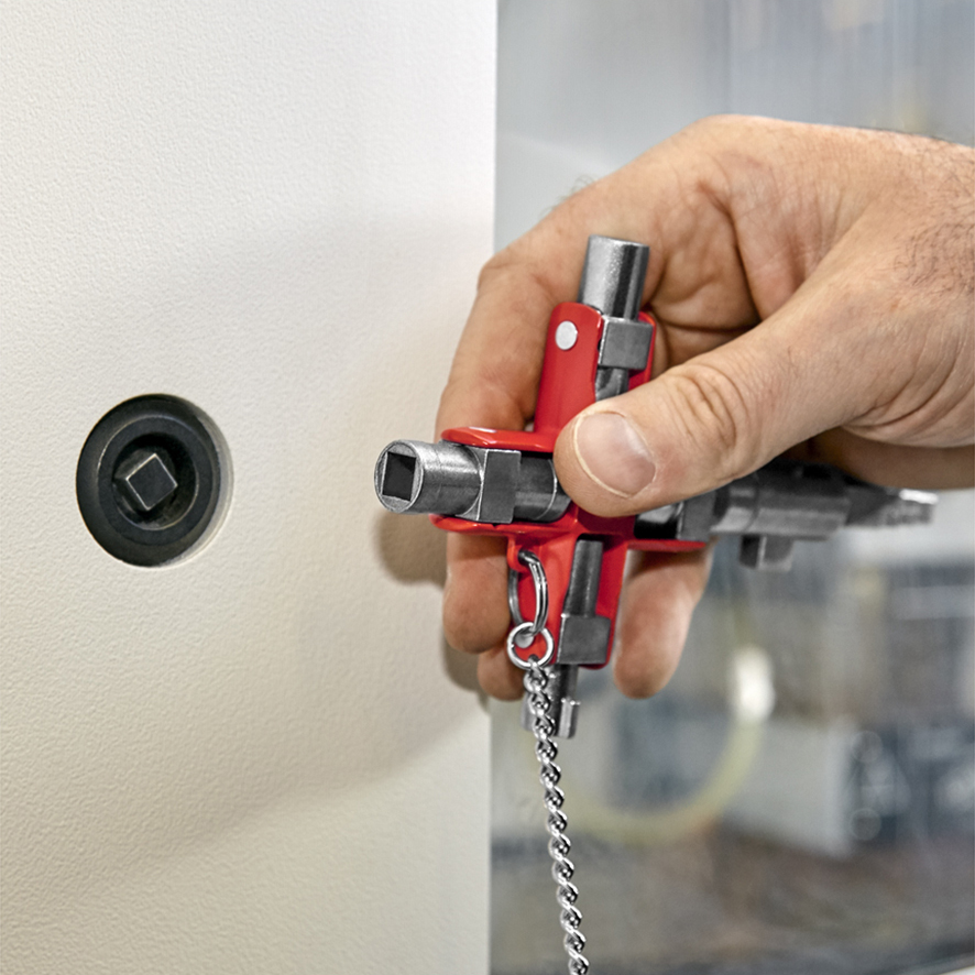 00 11 06 V01 Univerzálny kľúč „Stavba“ . Pre uzamykacie systémy v elektroinžinierstve, zásobovanie plynom a vodou, klimatizačné a vetracie systémy, priemysel, technické inštalácie v budovách a pod.. . . S odpojiteľnou reťazou a karabínkovým hákom. Celková dĺžka: 96 mm. Celková dĺžka: 157 mm. - Kapacita dvojbitového kľúča: 3 – 5mm - Kapacita štvorhran: 5,0 / 6,0 / 7,0 — 8,0 / 9,0 — 10,0mm - Kapacita trojuholníka: 7,0 — 8,0 / 9,0 — 10,0 / 11,0mm - Kapacita odstupňovaného štvorhranu: 6 / 7 / 8 / 9mm - Kapacita polmesiac: 6mm - : PZ - : 1/4 in14
