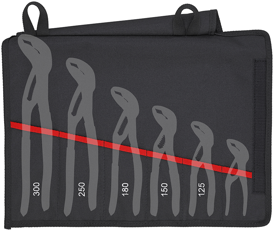00 19 55 S5 LE Zvinovacia taška pre KNIPEX Cobra® Vysoko kvalitná zrolovateľná taška vyrobená z trvácnej polyesterovej tkaniny. So suchým zipsom. Rozmery, otvorené (D x V): 440 x 330 mm. - Rozmer vonkajší (vnútorný) výška mm: 330mm - Rozmer vonkajší (vnútorný) hĺbka mm: 440mm