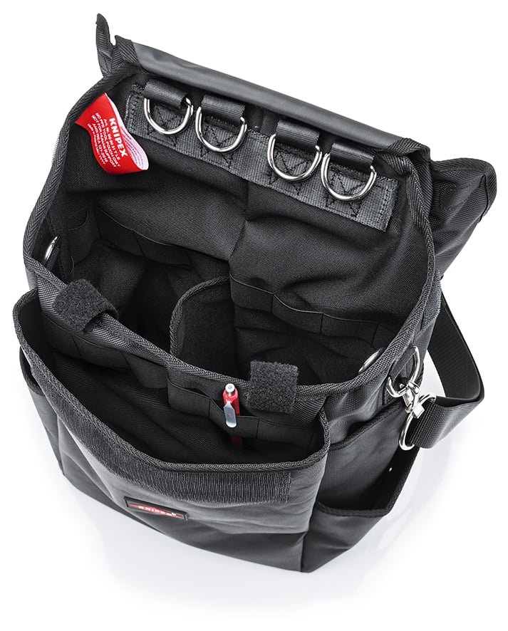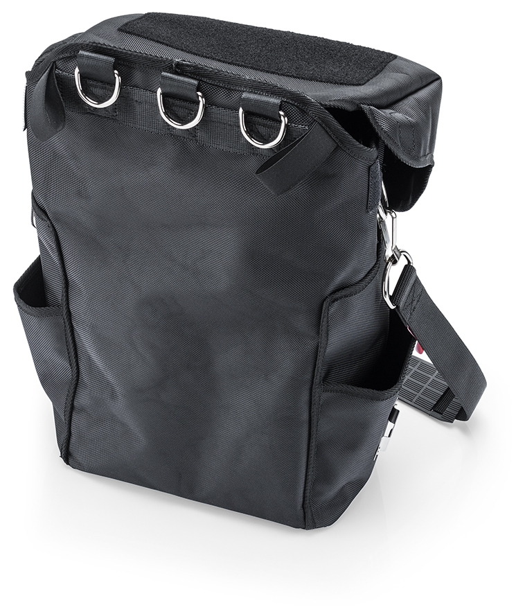 00 50 51 T LE Taška na náradie na výškové práce Organizér na náradie: chráni a organizuje náradie a príslušenstvo pri výškových prácach. 11 D-krúžkov z ocele: 8 určených na upevnenie náradia so závesným okom a 3 určené na upevnenie tašky k lezeckému vybaveniu – vhodné aj pre ľavákov. Zmestia sa doň rôzne predmety: hlavná priehradka je rozdelená, priehradka na dokumenty/tablety (DIN A4/14'') vrátane držiakov na perá a štyri bočné vrecká. Dve vonkajšie kovové príchytky na akumulátorové elektrické náradie a 18 vnútorných elastických pútok. Multifunkčný vrch: zrolovateľný pre ľahký prístup k nástrojom a záplata so suchým zipsom na individuálne označenie. . Silné syntetické vlákna, odolné voči nečistotám a striekajúcej vode vďaka pogumovanej vnútornej strane. Základná doska je vystužená plastom s piatimi gumenými nožičkami. Na splnenie predpisov pri práci vo výškach, napríklad pri priemyselnom lezení, v lesoch, pri záchranných službách, na mori atď.. Objem cca 17 litrov, vonkajšie rozmery VxŠxH asi 470 x 250 x 150 mm, hmotnosť prázdneho produktu cca 1 600 g. Nezávisle certifikovaná bezpečnosť: spoľahlivé zaťaženie do 15 kg. ŽIADNE OOP = žiadne osobné ochranné prostriedky. - Rozmer vonkajší (vnútorný) šírka mm: 250mm - Rozmer vonkajší (vnútorný) výška mm: 150mm - Rozmer vonkajší (vnútorný) hĺbka mm: 470mm
