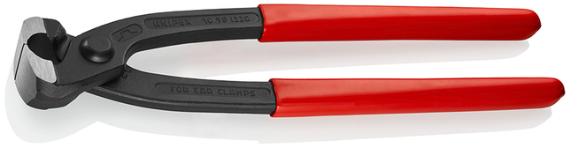 10 98 I220 Kliešte na spony s okami Na jednoduchú a spoľahlivú montáž 1 a 2-uškových spôn (systém Oetiker alebo pod.). žiadne poškodenie spôn v mieste stlačenia. štíhla hlava umožňuje skvelú prístupnosť v stiesnených oblastiach. Univerzálne použitie pre spony na manžetách homokinetických kľbov, chladičových a palivových potrubiach, systémoch stlačeného vzduchu, kompresoroch. Trvácne a silné.