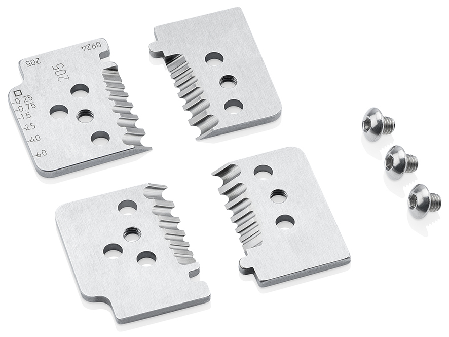 12 19 06 1 sada náhradných nožov pre 12 12 06 Správne odizolovanie aj pre ťažko odstrániteľné izolačné materiály vyrobené z PTFE, silikónu, Radox®, Kapton® a gumy; tiež viacvrstvové. Druhý pár nožov drží zostávajúcu izoláciu bezpečne na mieste. Vymeniteľná tvarovaná čepeľ sa automaticky prispôsobí príslušnému prierezu vodiča. So zarážkou pre konštantnú dĺžku odizolovania počas opakujúcej sa práce. Kapton® je registrovaná ochranná známka spoločnosti E. I. du Pont de Nemours and Company. Radox® je registrovaná ochranná známka spoločnosti Huber & Suhner AG.