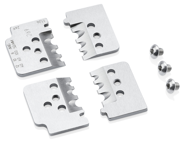 12 19 12 1 sada náhradných nožov pre 12 12 12 Správne odizolovanie aj pre ťažko odstrániteľné izolačné materiály vyrobené z PTFE, silikónu, Radox®, Kapton® a gumy; tiež viacvrstvové. Druhý pár nožov drží zostávajúcu izoláciu bezpečne na mieste. Vymeniteľná tvarovaná čepeľ sa automaticky prispôsobí príslušnému prierezu vodiča. So zarážkou pre konštantnú dĺžku odizolovania počas opakujúcej sa práce. Kapton® je registrovaná ochranná známka spoločnosti E. I. du Pont de Nemours and Company. Radox® je registrovaná ochranná známka spoločnosti Huber & Suhner AG. - AWG: 8 / 10 / 12