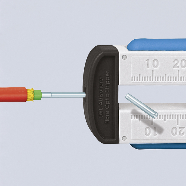 12 85 110 SB Odizolovacie náradie na optické káble Na odstránenie primárnej izolácie optických káblov priem. Ø 0,125 mm. Priemer noža 0,16 mm, otvor na podávanie kábla o priemere 0,35 mm. Nastaviteľný doraz nastavenia dľžky. - : základný povlak 0,125 mm