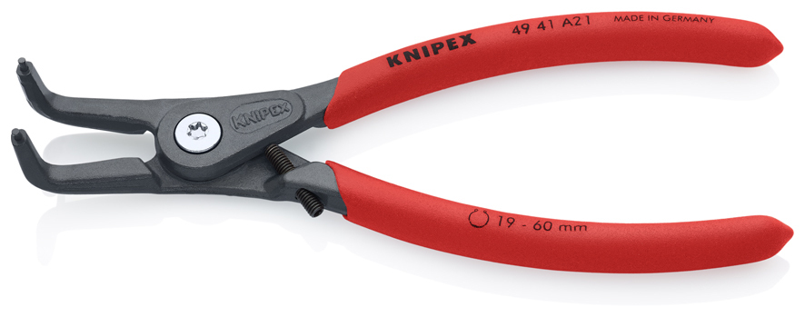 49 41 A21 Presné kliešte na poistné krúžky S vloženými hrotmi pre spoľahlivú prácu. . Presný, hladko fungujúci skrutkový kĺb. Kované. Veľké kontaktné plochy na špičkách: žiadna deformácia poistných krúžkov, jednoduché nasadenie. štíhly štýl hlavy umožňuje použitie v stiesnených oblastiach. Vnútorná otváracia pružina, chránená a skrytá. Rukoväte s protišmykovým plastovým povrchom. So zaistením proti prepnutiu (nastavenie pomocou dorazu).