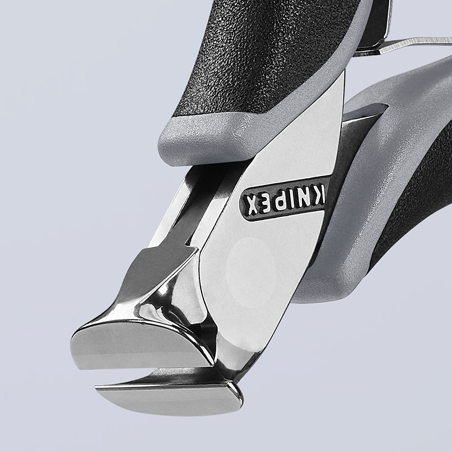 64 02 115 ESD Čelné cvikacie kliešte ESD pre elektroniku Presné kliešte na ultra jemné strihanie, napr. v elektronike a presnej mechanike. Rukoväte odvádzajúce statickú elektriku– disipatívne. Pevný prevlečný kĺb bez vôle. Dvojitá pružina s nízkym trením pre jemné a rovnomerné roztváranie. Zrkadlové leštenie spolu s jemným olejovým filmom ponúkajú účinnú ochranu proti hrdzi – žiadne skraty spôsobené odlupovaním chrómu z pochrómovaného náradia. Nože dodatočne kalené laserom; tvrdosť noža minimálne 56 HRC. Rukoväte s dvojfarebnými multikomponentnými úchopmi čierne/šedé. - Kapacity strihania mäkkého drôtu (priemer): Ø 2,0mm - Kapacity strihania stredne tvrdého drôtu (priemer): Ø 1,0mm - Kapacity strihania mäkkého drôtu (priemer): Ø 0,6mm - Šírka hlavy (A): 11mm - Dĺžka čeľustí (B): 6mm - Hrúbka čeľustí (spoj) (D): 7,5mm - Dĺžka reznej hrany v mm (C): 16mm - :