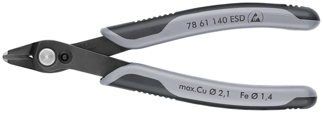 78 61 140 ESDSB Electronic Super Knips® XL ESD Dodatočná 15 mm dlhšia verzia: väčšia stabilita, vyšší rezný výkon. Na ultra jemné strihanie, napr. v elektronike a presnej mechanike. Predovšetkým na rezanie káblových spôn na dĺžku. Zbrúsené, veľmi ostré rezné hrany bez úkosu. Nožnice režú s kontrolovaným minimálnym vyosením reznej hrany pre najprecíznejšie rezanie aj tých najtenších drôtov a dlhú životnosť. Presne tvarované špičky režú káble blízko povrchu od Ø 0,2 mm. Kĺb s nitom z nerezovej ocele. Extrémne hladký pohyb pre minimálnu únavu pracovníka. S otváracou pružinou a obmedzovačom roztvorenia. - Kapacity strihania stredne tvrdého drôtu (priemer): Ø 1,4mm - Kapacity strihania mäkkého drôtu (priemer): Ø 0,2 – 2,1mm - Dĺžka čeľustí (B): 12,3mm - Hrúbka čeľustí (spoj) (D): 9,2mm - Šírka hlavy (A): 15,7mm - :