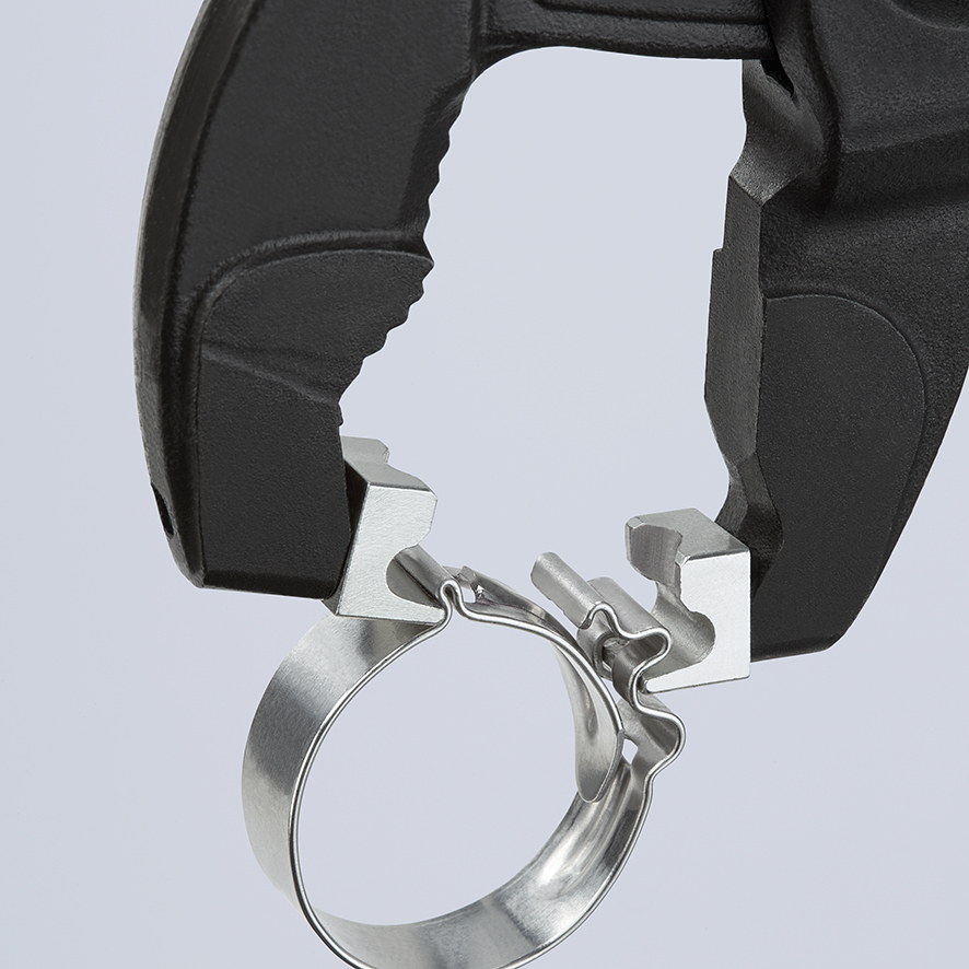 85 51 250 C Kliešte na hadicové spony na otvorenie a uzavretie zacvakávacích spôn. Otočné vložky čeľustí na spoľahlivé ovládanie svoriek vo všetkých polohách. Dobrá páková sila, ktorá umožňuje otvorenie a opätovné zatvorenie spôn pohodlne a jednoducho bez veľkej námahy. Na jednoduchú prácu na palivových hadiciach, vákuových trubkách a sacích tryskách a na mnohé iné aplikácie. Dodatočná funkcia: jemne odpojí hadice pomocou zúbkovanej čeľuste. štíhly dizajn hlavy; úzka šírka hlavy a otočné úchopové vložky čelustí z nich robia ideálny nástroj, predovšetkým v stiesnených oblastiach. - Nastaviteľné polohy: 14