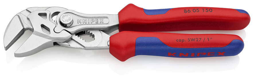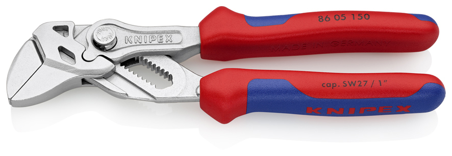 86 05 150 SB Kliešťové kľúče nahrádza sady metrických a palcových skrutkových kľúčov. hladké čeľuste na inštaláciu bez poškodenia pokovaných fitingov – práca priamo na chróme!. Tiež vynikajúce na uchopenie, podržanie, stlačenie a ohnutie obrobkov. žiadne poškodenie hrán citlivých armatúr vďaka nulovej vôli prítlaku čelustí. Rýchle nastavenie stlačením tlačidla priamo na obrobku. žiadne neúmyselné posunutie úchopových čeľustí a žiaden sklz kĺbu. Paralelné čeľuste poskytujú pevnejšie uchopenie; ich dizajn umožňuje flexibilné prispôsobenie všetkých šírok až po určenú maximálnu veľkosť. Račňový princíp umožňuje rýchle a jednoduché utiahnutie a uvoľnenie všetkých skrutkovaných spojov. Prevod páky vyšší ako 10:1 pre vysokú silu uchopenia. mini kliešťové kľúče pre presnú mechaniku. ideálny viacúčelový kľúč vreckovej veľkosti. nepostrádateľný spoločník v prípade núdzovej situácie. - Hrúbka čeľustí (spoj) (B2): 7,0mm - Hrúbka kĺba (B3): 10,5mm - Hrúbka špičiek (B1): 4,7mm - Nastaviteľné polohy: 14 - Kapacity na matice: Ø 1 - Kapacity na matice: 27mm