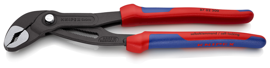 87 02 300 SB KNIPEX Cobra® Stlačte tlačidlo pre nastavenie na obrobku. Jemné nastavenie pre optimálne prispôsobenie rôznym veľkostiam obrobkov a pohodlnej šírke rukoväte. Samosvorné na trubkách a maticiach: žiadne vyšmyknutie obrobku a malá potreba ručnej sily. úchopové povrchy so špeciálne tvrdenými zubami, tvrdosť zubov pribl. 61 HRC: vysoká odolnosť voči opotrebovaniu a stabilné uchopenie. Dizajn prevlečného kĺbu pre vysokú stabilitu vďaka dvojitému vedeniu. Spoľahlivé zachytenie čapu závesu: žiadne neúmyselné posunutie. Ochrana pred privretím zabraňuje privretiu prstov pracovníka. - Nastaviteľné polohy: 30 - Kapacity použitia na rúrky (priemer): Ø 2 3/4in - Kapacity na matice: 60mm - Kapacity použitia na rúrky (priemer): Ø 70mm