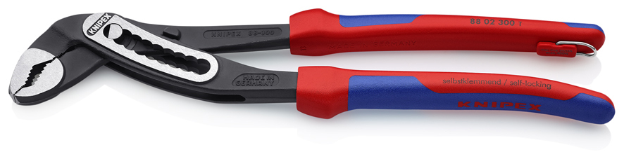 88 02 300 T BK KNIPEX Alligator® Samosvorné na trubkách a maticiach: žiadne vyšmyknutie obrobku a malá potreba ručnej sily. úchopové povrchy so špeciálne tvrdenými zubami, tvrdosť zubov pribl. 61 HRC: vysoká odolnosť voči opotrebovaniu a stabilné uchopenie. Dizajn prevlečného kĺbu pre vysokú stabilitu vďaka dvojitému vedeniu. Robustná konštrukcia, špineodolná; mimoriadne vhodné na prácu vonku. Ochrana pred privretím zabraňuje privretiu prstov pracovníka. kliešte so závesným okom na montáž ochrany proti pádu. - Nastaviteľné polohy: 9 - Kapacity použitia na rúrky (priemer): Ø 2 3/4in - Kapacity na matice: 60mm - Kapacity použitia na rúrky (priemer): Ø 70mm - :