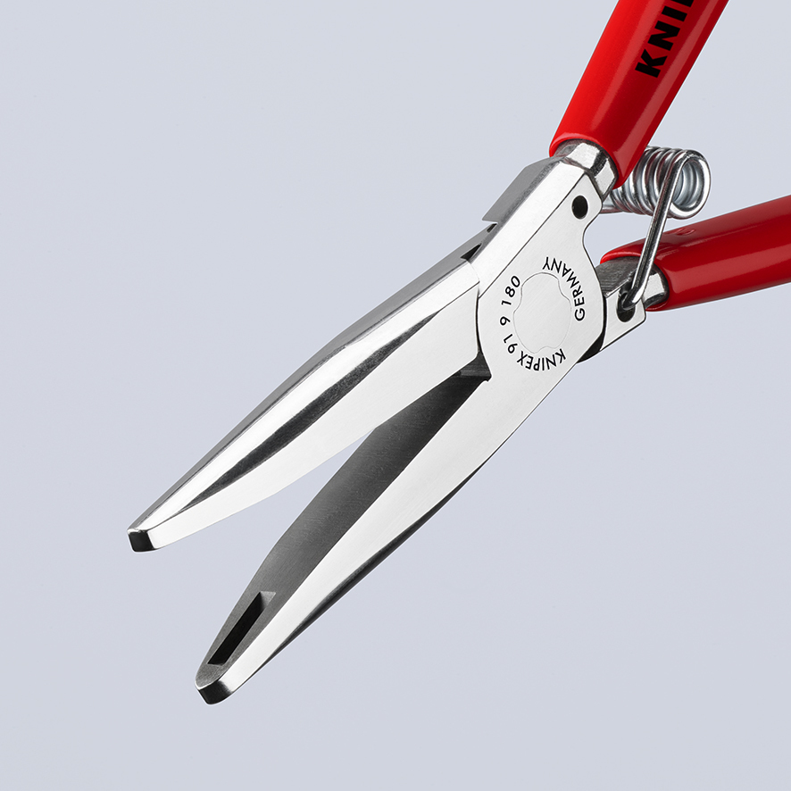 91 91 180 Kliešte na čalúnenie Na profesionálne pripevňovanie poťahov profilovaných sedadiel k rámu sedadla pomocou všetkých bežných čalúnickych spôn. Bezpečne vložte klipy čalúnenia, nasmerujte a podržte: špeciálna drážka upevní klipy čalúnenia v správnej polohe. Jednoduché umiestnenie klipov čalúnenia: zatváracia pružina udržiava kliešte zatvorené, klip môžete bezpečne umiestniť a zatlačiť. čalúnícke klipy môžu byť ľahko stlačené spolu vďaka dobrému prevodovému pomeru klieští. Trvácne a silné.