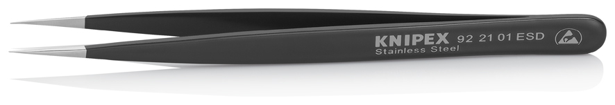 92 21 01 ESD Univerzálne pinzety ESD Povlak odvádzajúci elektrostatickú elektriku: Univerzálne pinzety vo verzii ESD kontrolovane vyrovnávajú rozdiely v elektrickom potenciáli medzi ich používateľom a obrobkami. Spĺňajú požiadavky elektronického a presného strojárskeho priemyslu a chránia citlivé komponenty. . . . . . - Povrch: matné - Dokončenie: len - Šírka špičiek (A): 0,2mm - Šírka špičiek (B): 0,25mm - Verzia špičiek pinzety: tvar ihlových špičiek - Odolnosť voči korózii: - Odolnosť voči kyselinám: veľmi dobre - : - : - Sektory: elektronika - Magnetické: nemagnetizovateľné (80%) - Správanie: odvádzajúce elektrostatickú elektriku