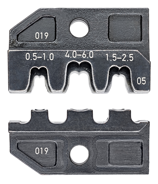 97 49 05 Lisovacie čeluste . . . Aplikácia: neizolované otvorené konektory (šírka zástrčky 4,8 + 6,3 mm) 0,5 - 6,0 mm². - Aplikácie: neizolované otvorené konektory (šírka zástrčky 4,8 + 6,3 mm) - Kapacita v milimetroch štvorcových: 0,5 — 6mm² - Počet lisovacích pozícií: 3 - AWG: 20 — 10
