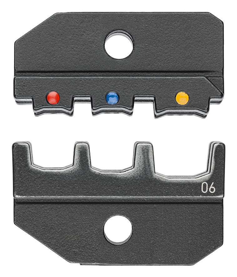 97 49 06 Lisovacie čeluste . . Aplikácia: izolované koncovky, ploché konektory a spojovacie články 0,25 - 6,0 mm². - Aplikácie: izolované koncovky, ploché konektory a spojovacie články - Kapacita v milimetroch štvorcových: 0,5 — 6mm² - Počet lisovacích pozícií: 3 - AWG: 20 — 10
