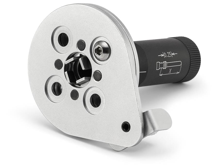 97 59 65 2 Univerzálny polohovač pre 97 52 65 / 97 52 65 A / 97 52 65 DG / 97 52 65 DG A Chróm-vanádiová elektrooceľ vysokej kvality, kalená v oleji. Univerzálne nastaviteľný polohovač pre opakované presné zarovnanie sústruženého kontaktu v lisovacích kliešťach. Individuálne prispôsobenie priemeru a hĺbke kontaktov. Zaručené vycentrovanie kontaktov. Ideálne pre malé série, prototypy a kontakty s rôznymi rozmermi. Jednoduché a flexibilné použitie u lisovacích klieští. Káblový prierez: 0,14 – 6 mm². Priemer kontaktu: Ø 1 – 8 mm. Dĺžka kontaktu: 20 – 45 mm. - Aplikácie: Univerzálny polohovač pre 97 52 65 / 97 52 65 A / 97 52 65 DG / 97 52 65 DG A