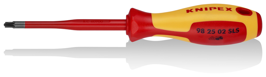 98 25 02 SLS (Štíhly) PlusMinus skrutkovač špičky pre PlusMinus profilové skrutky. Použitie s elektronickými inštalačnými komponentmi, napr. automatickými prerušovačmi. Znížený priemer izolácie noža pre hlboko uložené pružinové a skrutkové prvky. Ergonomicky optimalizovaná dvojkomponentná rukoväť pre menej únavnú prácu a optimálny prenos sily. Dizajn rukoväte zabraňuje šmýkaniu. Pozidriv® je registrovaná ochranná známka spoločnosti European Ind. Serv. Ltd.. - Veľkosť: PZ/S 2 - Dĺžka noža: 100mm - Dĺžka rukoväte: 118mm - Dĺžka neizolovanej čepele: 18mm - :