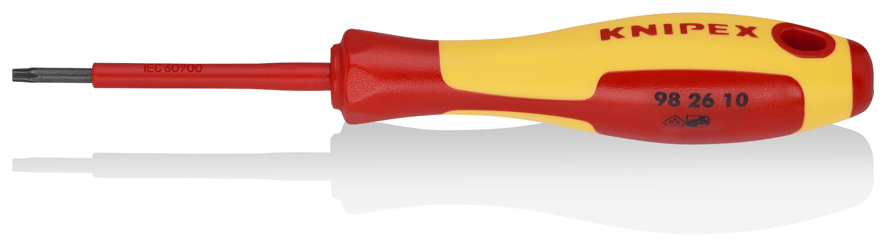 98 26 10 Skrutkovače pre Torx® skrutky Ergonomicky optimalizovaná dvojkomponentná rukoväť pre menej únavnú prácu a optimálny prenos sily. Dizajn rukoväte zabraňuje šmýkaniu. Torx® je registrovaná ochranná známka spoločnosti Acument Global Technologies, Inc.. - Veľkosť: TX10 - Dĺžka noža: 60mm - Dĺžka rukoväte: 102mm - Dĺžka neizolovanej čepele: 15mm - :
