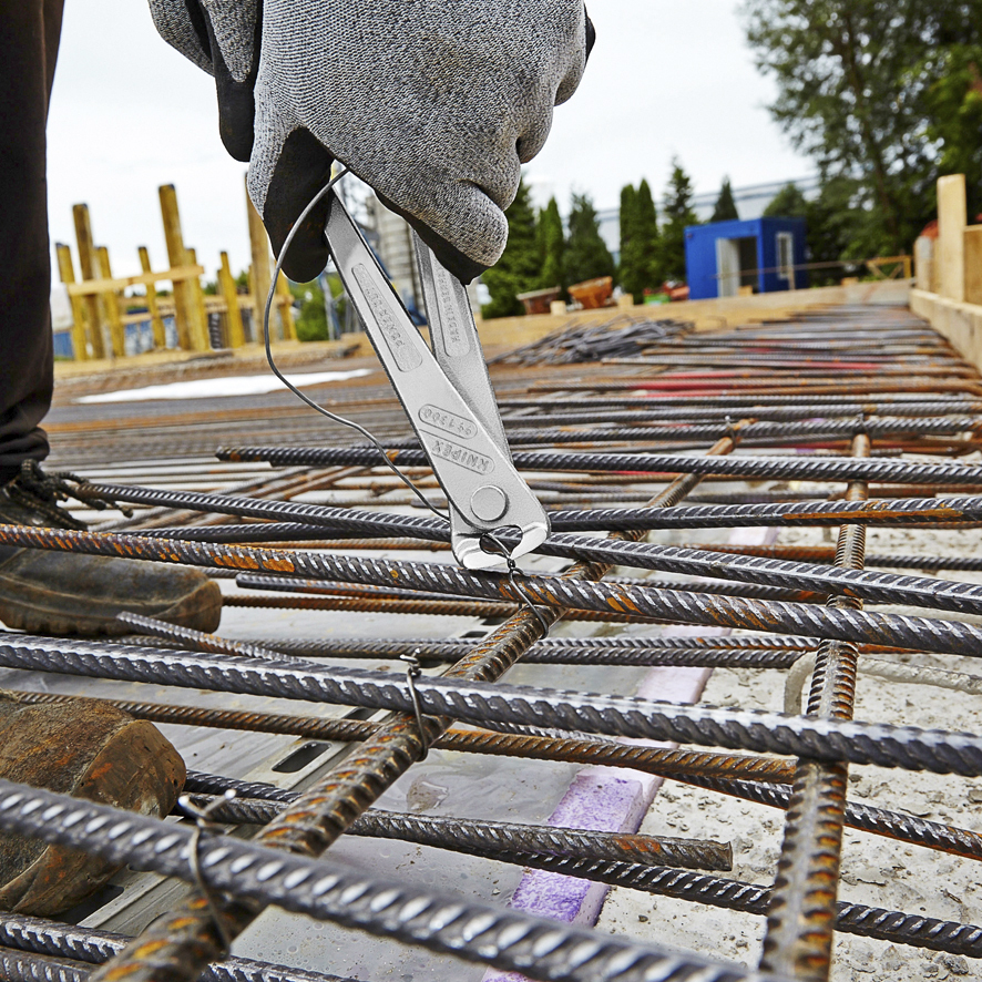 99 14 300 SB Armovacie kliešte s veľkou pákovou silou 25 % menej námahy potrebnej v porovnaní s armovacími kliešťami rovnakej veľkosti. extra úzke prevedenie na viazanie hlboko namontovaných oceľových tyčí. Na zafixovanie armovacej ocele viazacím drôtom z rolky. Zakrútenie a odstrihnutie drôtu v jednej pracovnej operácii. Kĺb s veľkou pákovou silou, minimalizuje námahu, aj pri použití hrubých viazacích drôtov. Vysoké tlmenie rezného úderu pri prestrihnutí viazacieho drôtu znižuje zaťaženie na šľachách a svaloch. Rezné hrany dodatočne kalené; tvrdosť reznej hrany pribl. 61 HRC. - Kapacity strihania stredne tvrdého drôtu (priemer): Ø 2,0mm - Kapacity strihania stredne tvrdého drôtu (priemer): Ø 3,8mm - Šírka hlavy (W3): 25,0mm
