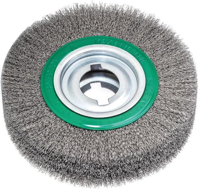 Odjehlovací kruhový kartáč, nerezový oceľový drôt, vlnitý Provedenie: Husté, rovnomerné osadenie špeciálnym drôtom s vysokou pevnosťou pre obzvlášť dlhú životnosť. Upnutie dvojitou klinovou drážkou 13 x 7 mm. Použitie: Pre upnutie do bežných stolných odjehlovacích strojov a odjehlovacích zariadení. Špeciálne pre odjehlovanie rúr, profilov, plochého materiálu atď. Výrobca: Lessmann GmbH, Lucas-Schultes-Str. 2, 86732 Oettingen i. Bayern, DE, +4990827070, info@lessmann.com