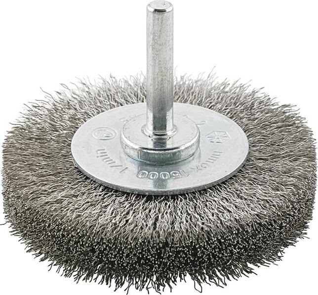 Nástrojový kruhový kartáč, nerezový ocelový drôt (1.4310), vlnitý Provedenie: So stopkou 6 mm. Použitie: Vo vŕtačkách a rýchloběžnom elektrickom a pneumatickom náradí. Na použitie pri ľahkých až stredne ťažkých čistiacich prácach a opracovaní veľkých plôch. Na zdrsnenie a matovanie, ako aj odstránenie farby, laku, otřepov, hrdze, okují atď. Výrobca: Einkaufsbüro Deutscher Eisenhändler GmbH, EDE Platz 1, 42389 Wuppertal, DE, +4920260960, webkontakt@ede.de