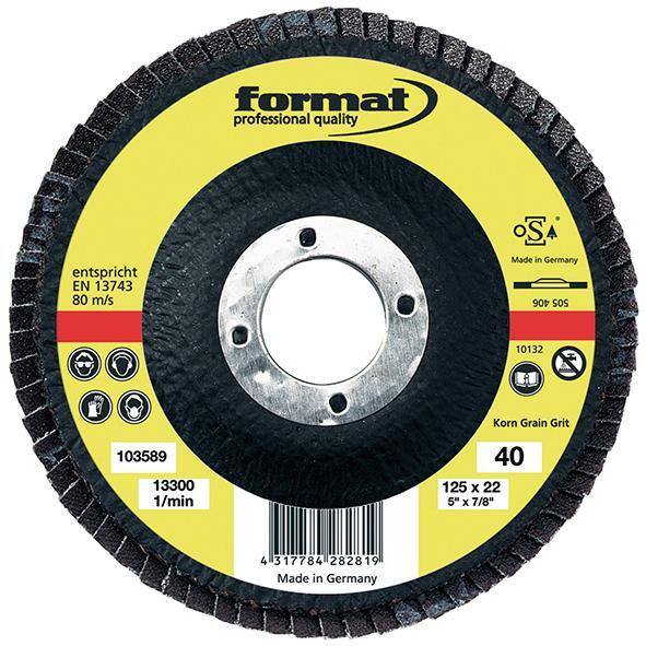 Lamelový brusný kotúč, Universal, Ø 125 mm, rovný Provedenie: Zirkon-korundové lamely (ZA). Agresívne prevedenie, vysoko pevné usadenie pryskyřicovým pojivom s rovnou doskou zo sklotextilu. Normovaný otvor 22,23 mm. Použitie: Vhodné na brúsenie ploch. Výrobca: Einkaufsbüro Deutscher Eisenhändler GmbH, EDE Platz 1, 42389 Wuppertal, DE, +4920260960, webkontakt@ede.de