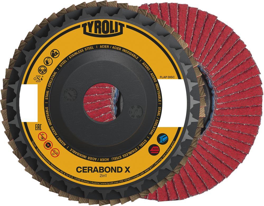 Lamelový brúsny kotúč, keramické zrno CERABOND X Vyhotovenie: S keramickým zrnom (CA), s rovnými plastovými talířmi. Chladiace vlastnosti vďaka aktívnym brúsnym prísadám. Vďaka samo-brusnému efektu vysoko výkonného brúsneho keramického zrna v súčinnosti s aplikovanou špecializovanou technológiou spojiva je možné nástroj ľahko ostriť po celú dobu jeho životnosti. Talíř je samovyvažujúci, vďaka čomu je možné kotúč využiť kompletně. Bez obsahu železa, síry a chlóru v spojive. Normovaný otvor 22,23 mm. Použitie: Hodí sa na plošné brúsenie, zarovnávanie zvarov, zkosovanie hrán a odhrotovanie. Výrobca: Tyrolit GmbH, August-Rasch-Straße 12, 82216 Maisach, DE, +4981413930, tyrolit-de@tyrolit.com